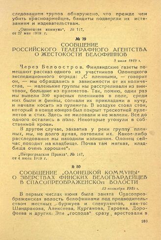 Сообщение «Олонецкой Коммуны» о зверствах финских белогвардейцев в Спасопреображенской волости. 12 сентября 1919 г.