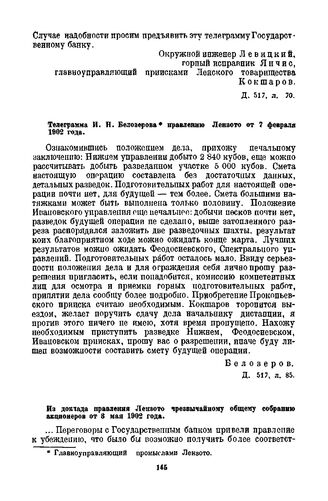 Телеграмма И.Н. Белозерова правлению Лензото от 7 февраля 1902 года // Д. 517, л. 85.