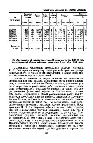 Результаты операций по отчетам Ленского золотопромышленного товарищества за 6 лет