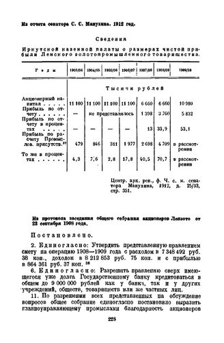 Из протокола заседания общего собрания акционеров Лензото от 23 сентября 1908 года // Д. 33, лл. 56, 57.