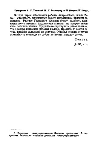 Телеграмма А.Г. Теппана И.Н. Белозерову от 29 февраля 1912 года // Д. 943, л. 1.