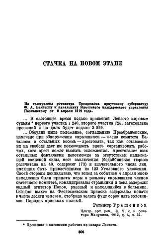 Из телеграммы ротмистра Трещенкова иркутскому губернатору Ф.А. Бантышу и начальнику Иркутского жандармского управления Познанскому от 9 апреля 1912 года // Центр. арх. рев., ф. Ч. с. к. сенатора Манухина, 1912, д. 4, л. 34.