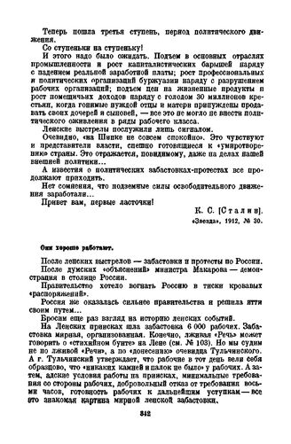 Сталин о Ленском расстреле. Они хорошо работают // «Звезда», 1912, № 31.