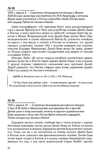 Главная Россия и Тибет 1900-1914 1905 г. апреля 2. - Секретная телеграмма посланника в Пекине П.М. Л...