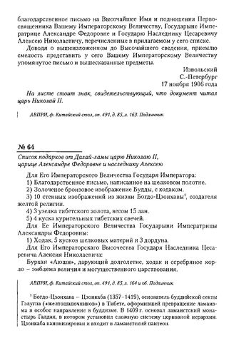 Главная Россия и Тибет 1900-1914 Список подарков от Далай-ламы царю Николаю II, царице Александре Фе...