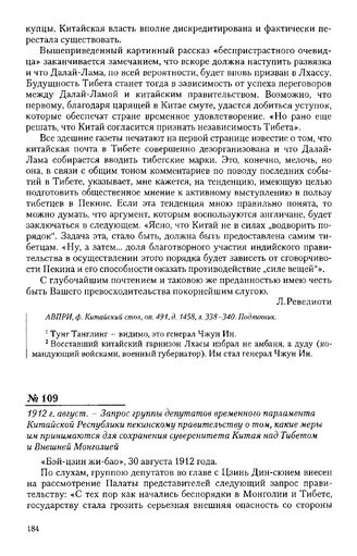 1912 г. август. - Запрос группы депутатов временного парламента Китайской Республики пекинскому правительству о том, какие меры им принимаются для сохранения суверенитета Китая над Тибетом и Внешней Монголией // АВПРИ, ф. Миссия в Пекине, oп. 761, д. 341, л. 103-106. Перевод с китайского, современный подлиннику.