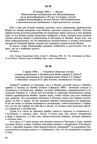 27 января 1904 г. — Письмо Министерства иностранных дел Великобритании послу Великобритании в России Ч. Скотту о беседе с графом Бенкендорфом, послом России в Великобритании, о нежелательности пребывания в Пуне российского консула
