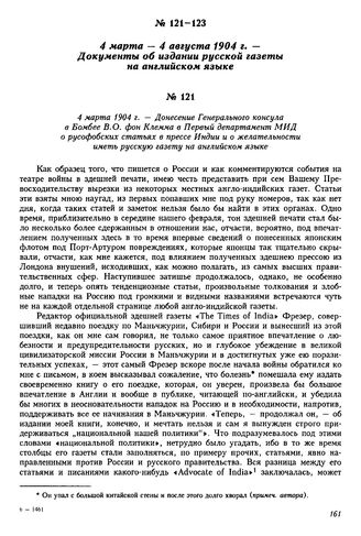 4 марта 1904 г. — Донесение Генерального консула в Бомбее В.О. фон Клемма в Первый департамент МИД о русофобских статьях в прессе Индии и о желательности иметь русскую газету на английском языке // АВПРИ, ф. 147 Среднеазиатский стол, оп. 485, д. 1118, л. 1-2. Копия.