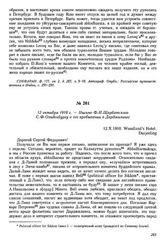 12 октября 1910 г. — Письмо Ф.И. Щербатского С.Ф. Ольденбургу о его пребывании в Дарджилинге