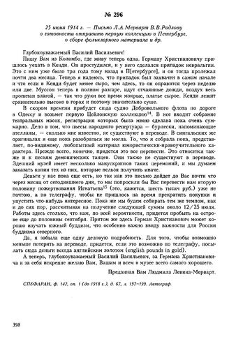 Главная Русско-индийские отношения в 1900-1917 25 июня 1914 г. — Письмо Л.А. Мерварт В.В. Радлову о готовности отп...