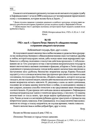 1702 г. мая 8. — Грамота Петра I Августу II с обещанием помощи в отражении шведского наступления // РГАДА, Сношения с Польшей, оп. 1, 1702 г., д. 1, лл. 5-6. Отпуск. П. и Б., т. II, № 431.