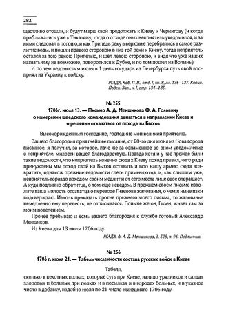 1706г. июля 13. — Письмо А.Д. Меншикова Ф.А. Головину о намерении шведского командования двигаться в направлении Киева и о решении отказаться от похода на Быхов // РГАДА, ф. А.Д. Меншикова, д. 528, л. 96. Подлинник.