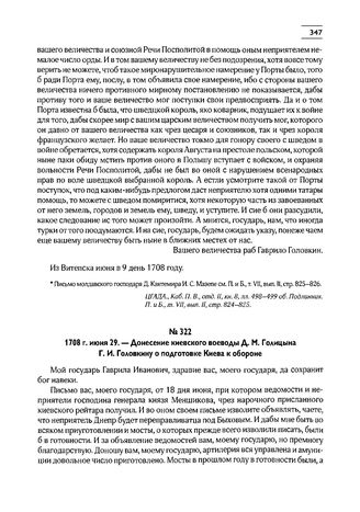 1708 г. июня 29. — Донесение киевского воеводы Д.М. Голицына Г.И. Головкину о подготовке Киева к обороне // РГАДА, Письма и прошения на рус. яз., 1708 г., д. 23, лл. 204-205. Подлинник.