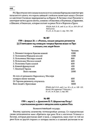 Главная Северная война Т1 1700-1709 1709 г. февраля 26. — «Роспись, сколько шведских региментов [с] Ста...