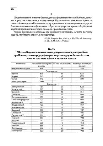 Главная Северная война Т1 1700-1709 1709 г. — «Ведомость нижеписанных драгунских полков, которые были п...