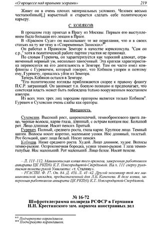 Шифротелеграмма полпреда РСФСР в Германии Н.Н. Крестинского зам. наркома иностранных дел Л.М. Карахану о сроках выезда из Берлина иностранных защитников эсеров для участия в процессе. 15 мая 1922 г. // АПРФ. Ф. 3. Оп. 59. Д. 16. Л. 113. Машинописная копия.