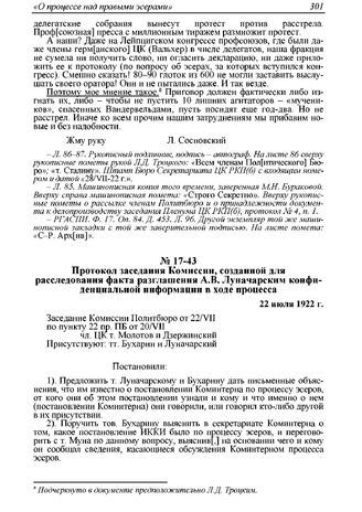 Протокол заседания Комиссии, созданной для расследования факта разглашения А.В. Луначарским конфиденциальной информации в ходе процесса. 22 июля 1922 г.