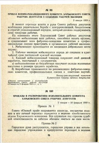 Приказы и распоряжения Исполнительного комитета Харьковского Совета рабочих депутатов. 2 января — 10 февраля 1919 г.
