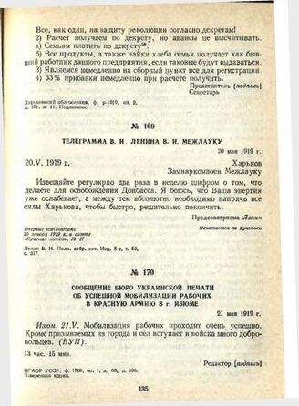Телеграмма В. И. Ленина В. И. Межлауку. 20 мая 1919 г. // Ленин В. И. Полн. собр. соч. Иэд. 5-е, т. 60.
