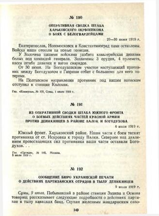 Оперативная сводка штаба Харьковского окрвоенкома о боях с белогвардейцами. 29—30 июня 1919 г.