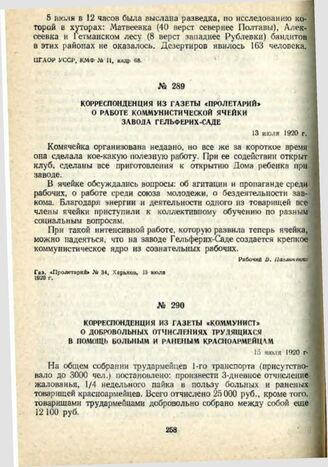 Главная Харьковщина в период гражданской войны и иностранной военной интерв... Документы Корреспонденция из газеты «Коммунист» о добровольных отчислениях тр...