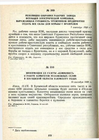 Резолюция собрания рабочих завода Всеобщей Электрической Компании, выражающая готовность тружеников предприятия отдать все силы для борьбы с Врангелем. 7 сентября 1920 г. // Газ. «Коммунист», № 200, Харьков, 7 сентября 1920 г.