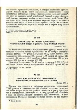Из отчета Харьковского губсовнархоза о состоянии промышленности в губернии. Ноябрь 1920 г.