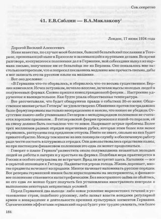 Е.В. Саблин — В.А. Маклакову. Лондон, 17 июля 1934 года // Архив СВР России, д. 16872, т. 1, л. 364-366.