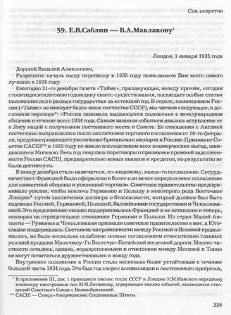 Е.В. Саблин — В.А. Маклакову. Лондон, 1 января 1935 года // Архив СВР России, д. 16872, т. 2, л. 47-50.