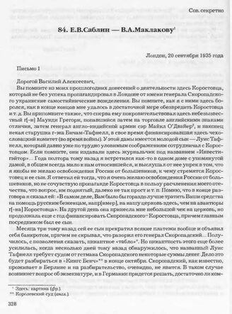 Е.В. Саблин — В.А. Маклакову. Лондон, 20 сентября 1935 года // Архив СВР России, д. 16872, т. 2, л. 309-310.