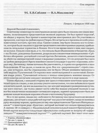 Е.В. Саблин — В.А. Маклакову. Лондон, 1 февраля 1936 года // Архив СВР России, д. 16872, т. 3, л. 18-24.