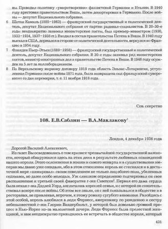 Е.В. Саблин — В.А. Маклакову. Лондон, 4 декабря 1936 года // Архив СВР России, д. 16872, т. 3, л. 300-305.