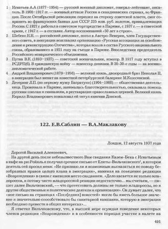 Е.В. Саблин — В.А. Маклакову. Лондон, 12 августа 1937 года
