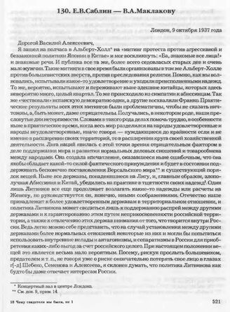 Е.В. Саблин — В.А. Маклакову. Лондон, 9 октября 1937 года // Архив СВР России, д. 16872, т. 4, л. 33-37.