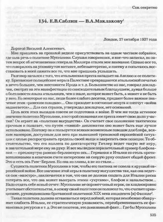 Е.В. Саблин — В.А. Маклакову. Лондон, 27 октября 1937 года // Архив СВР России, д. 16872, т. 4, л. 161-164.