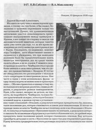 Е.В. Саблин — В.А. Маклакову. Лондон, 22 февраля 1938 года