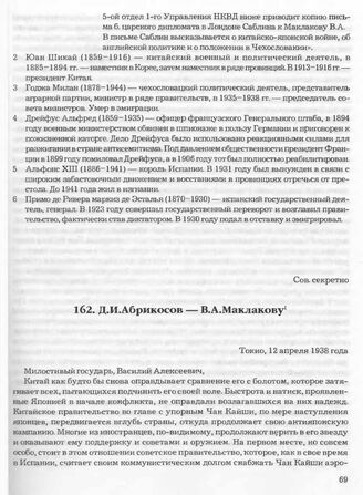 Д.И. Абрикосов — В.А. Маклакову. Токио, 12 апреля 1938 года // Архив СВР России, д. 16872, т. 4, л. 436-442.