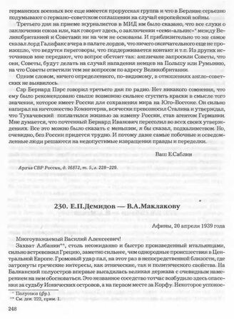 Е.П. Демидов — В.А. Маклакову. Афины, 20 апреля 1939 года