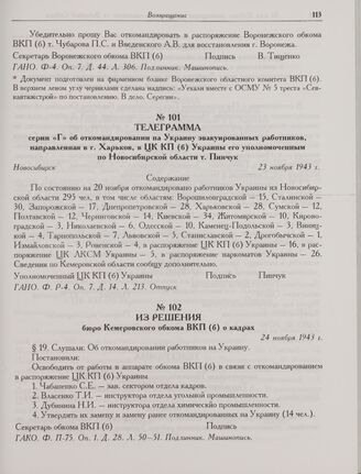 Из решения бюро Кемеровского обкома ВКП(б) о кадрах. 24 ноября 1943 г.