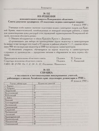 Из решения исполнительного комитета Кемеровского областного Совета депутатов трудящихся «О подготовке медико-санитарных кадров». 3 февраля 1944 г.
