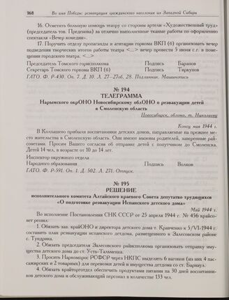 Во имя Победы: Реэвакуация гражданского населения из Западной Сибири в документах и материалах (1942-1948 гг.) Возвращение. — Томск: Изд-во ТГПУ, 2015.