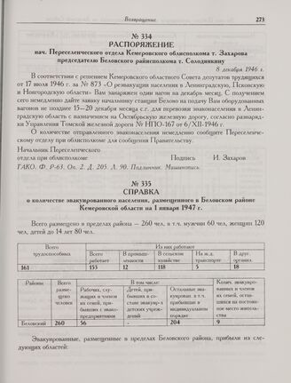 Справка о количестве эвакуированного населения, размещенного в Беловском районе Кемеровской области на 1 января 1947 г. // ГАКО. Ф. Р-63. Оп. 2. Д. 205. Л. 84. Копия. Машинопись.