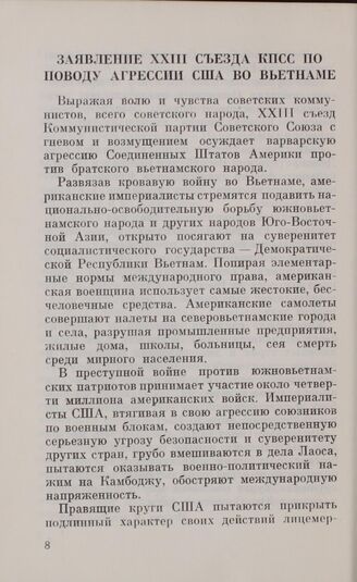 Заявление XXIII съезда КПСС по поводу агрессии США во Вьетнаме. Апрель 1966 г.