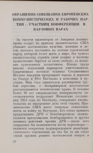 Обращение Совещания европейских коммунистических и рабочих партий — участниц Конференции в Карловых Варах. Карловы Вары, апрель 1967 г.