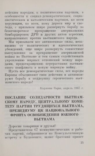 Послание солидарности вьетнамскому народу. Центральному Комитету Партии трудящихся Вьетнама, Президиуму ЦК Национального фронта освобождения Южного Вьетнама. Будапешт, 28 февраля 1968 г.