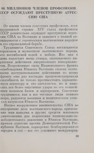86 миллионов членов профсоюзов СССР осуждают преступную агрессию США. Москва, март 1968 г.