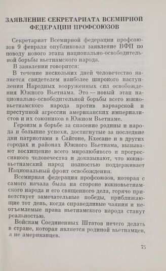 Заявление секретариата Всемирной Федерации профсоюзов. Прага, 9 февраля 1968 г.