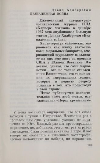 Дэвид Халберстам. Безнадежная война // «Харперс мэгэзин», декабрь 1967 г.