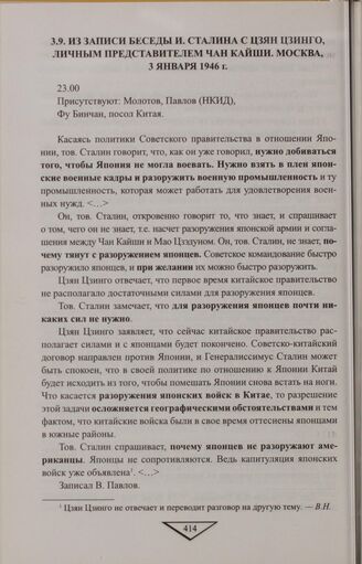 Из записи беседы И. Сталина с Цзян Цзинго, личным представителем Чан Кайши. Москва, 3 января 1946 г. [2]