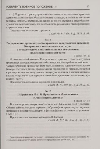 Из решения № 1131 Ярославского облисполкома «О пионерских лагерях». 1 июля 1941 г.